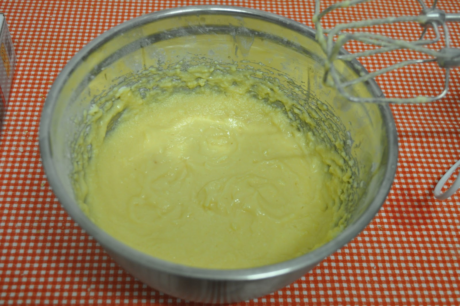 - Añadimos las huevos, de uno en uno hasta que queden integrados en la masa, batiendo con las varillas.